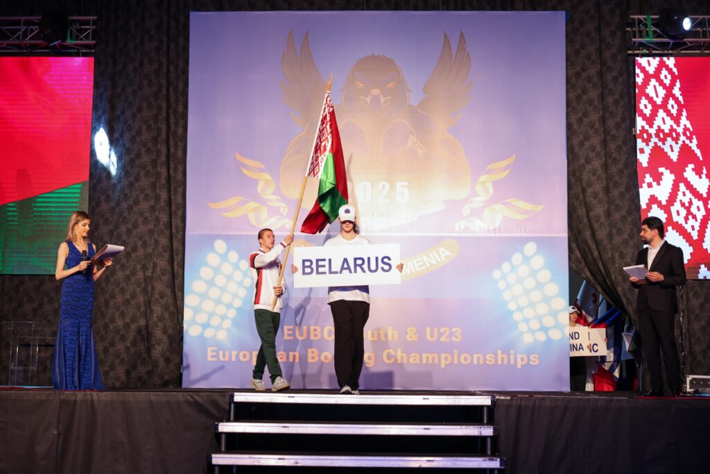 По традиции на арене появились представители всех стран-участниц турнира с государственными флагами, в том числе и флаг Республики Беларусь. Часть нести флаг своей Родины предоставилась Дмитрию Сорокину, воспитаннику Бобруйского училища олимпийского резерва (Могилевская область) .