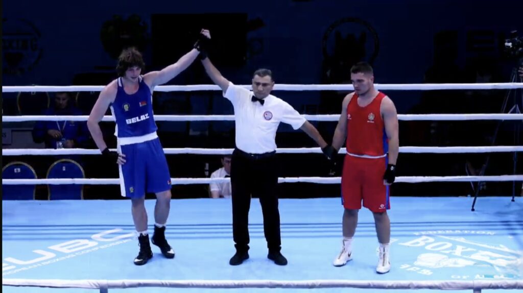 👏Первые победы на турнире над представителями Молдовы одержали Денис Лесун (63,5 кг), который победил Игоря Назарова 4:1 и вышел в 1/4 стадию турнира и Станислав Жилянин (92 кг), выигравший у Кристиана Лемнару 4:1, тем самым пройдя в полуфинал первенства Европы.