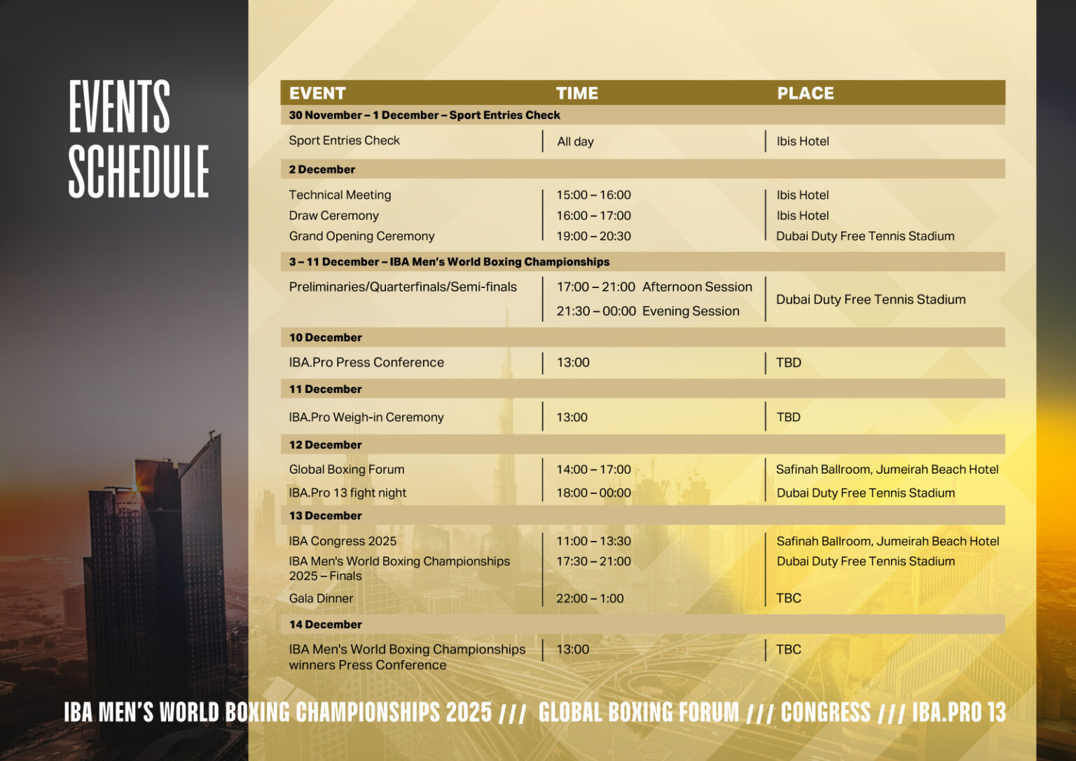 ⚡💥Чемпионата мира по боксу среди мужчин 2025 года IBA пройдет со 2 по 13 декабря в Дубае (ОАЭ) и станет главным событием двухнедельного Фестиваля бокса.