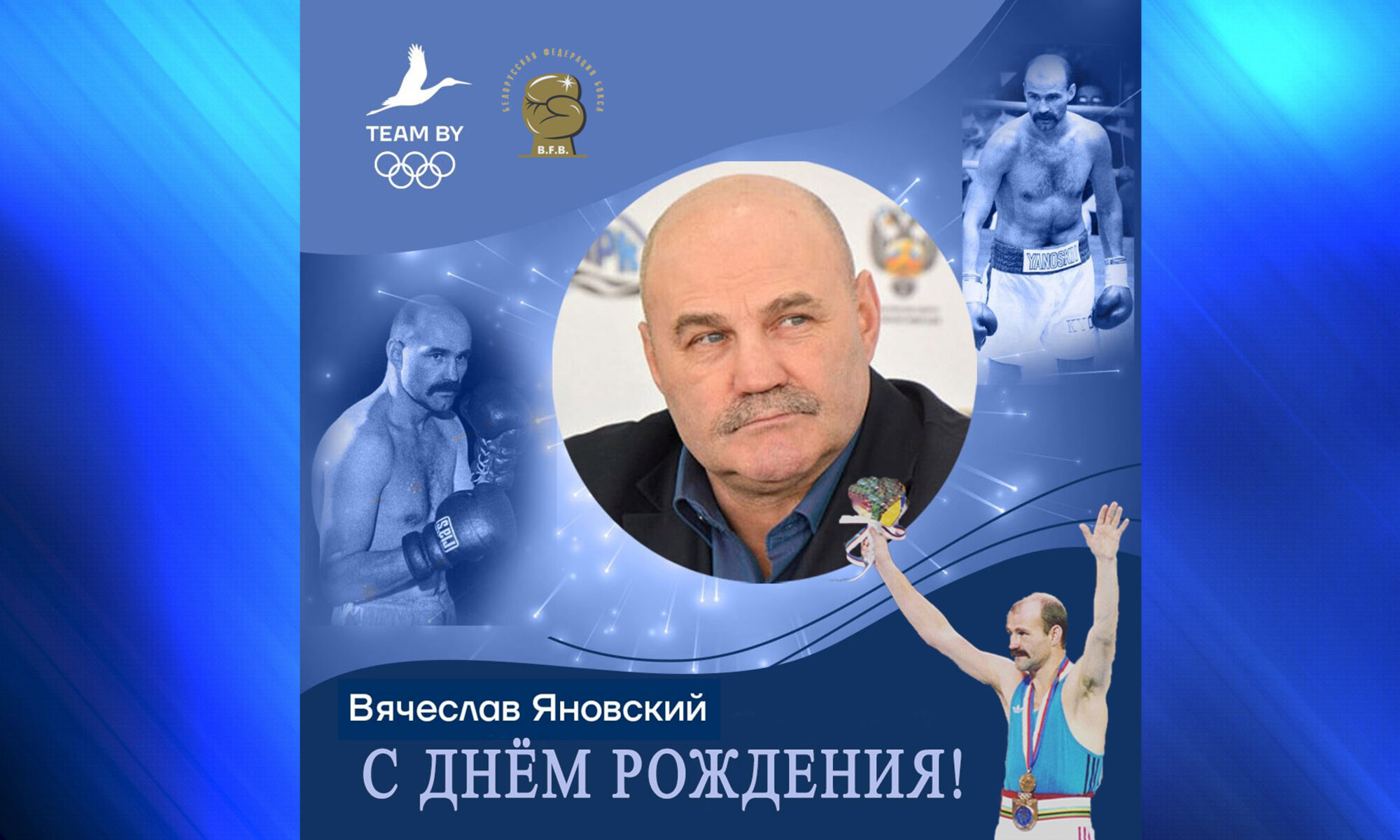 Общественное объединение «Белорусская федерация бокса» поздравляет с Днем рождения первого и единственного в истории белорусского бокса Олимпийского чемпиона, Заслуженного мастера спорта СССР, воспитанника знаменитой витебской школы бокса Вячеслава Евгеньевича ЯНОВСКОГО!
