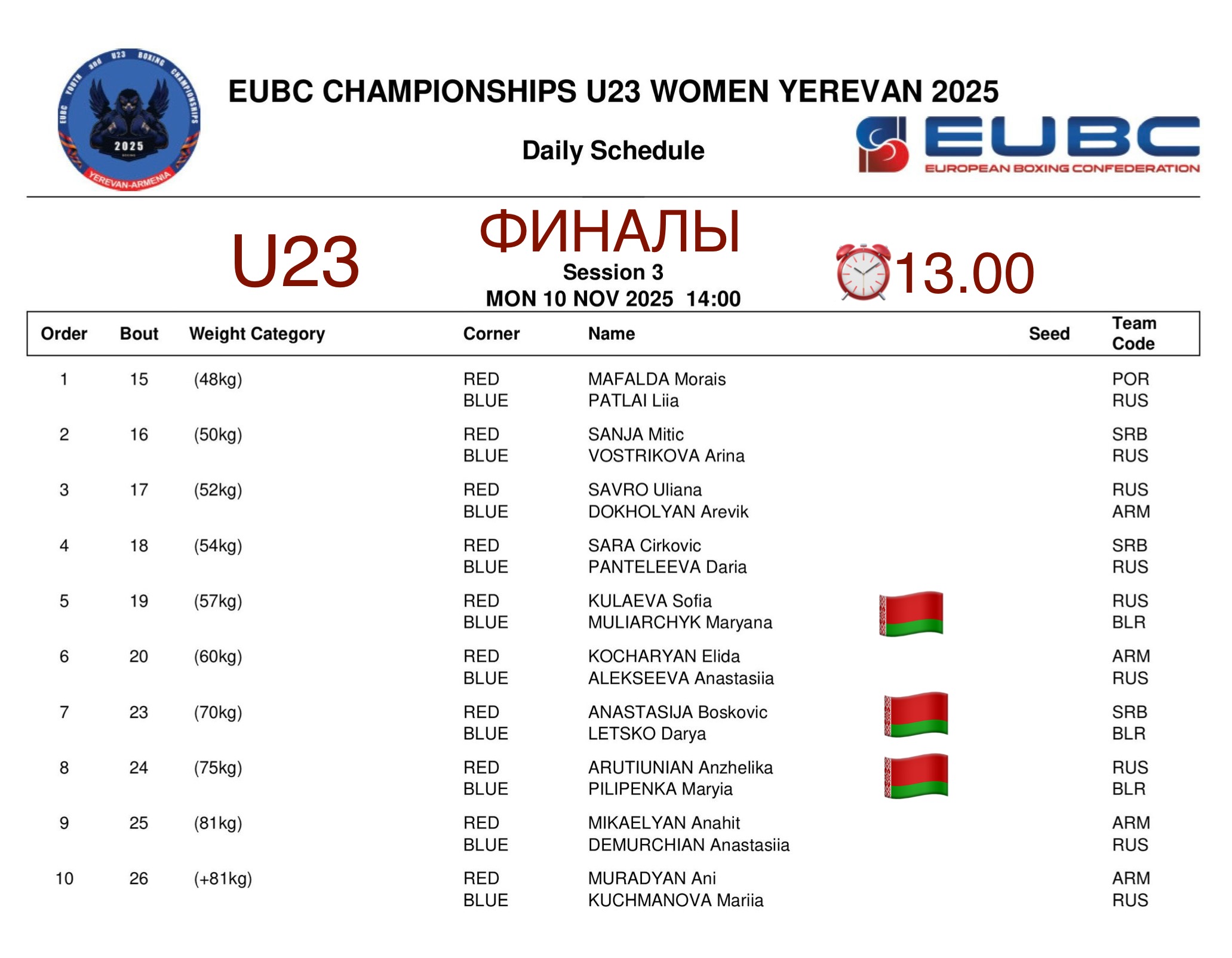 Финальные поединки U18 на Чемпионате Европы. Анонс финалов у молодежи U23