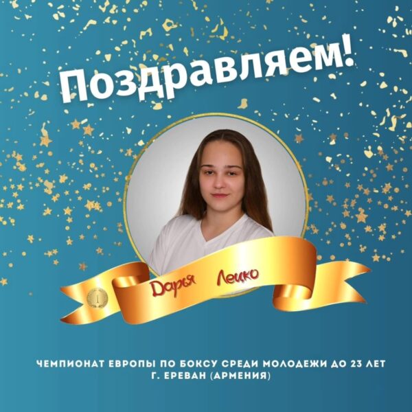 🔥🥇Лецко Дарья в весовой категории до 70 кг стала чемпионкой Европы по боксу среди молодежи до 23 лет в г. Ереване (Армения). 🥊 В финале наша спортсменка одержала победу над сербкой Анастасией Боскович со счетом 5-0