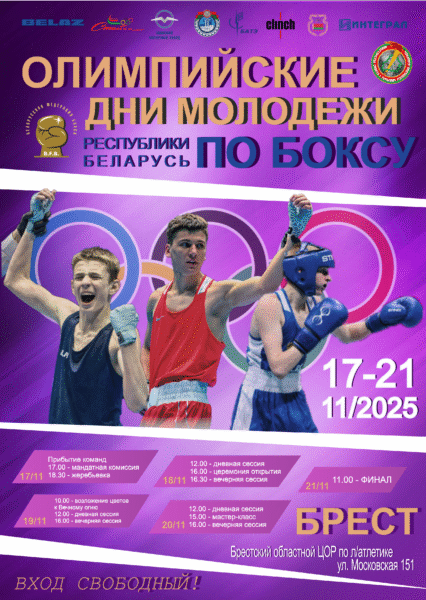 🥊 Олимпийские дни молодежи Республики Беларусь по боксу пройдут с 17 по 21 ноября. Сборные команды шести областей и г. Минска приедут в г. Брест, где на базе БОЦОР по л/атл. будут сражаться за медали и командный кубок соревнования.