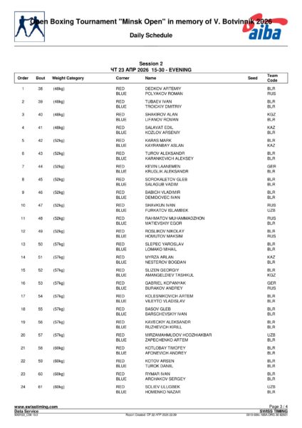 Регламент. Жеребьевка. МТ «MINSK OPEN» памяти В.В. Ботвинника