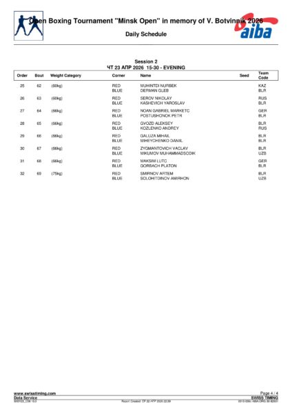 Регламент. Жеребьевка. МТ «MINSK OPEN» памяти В.В. Ботвинника